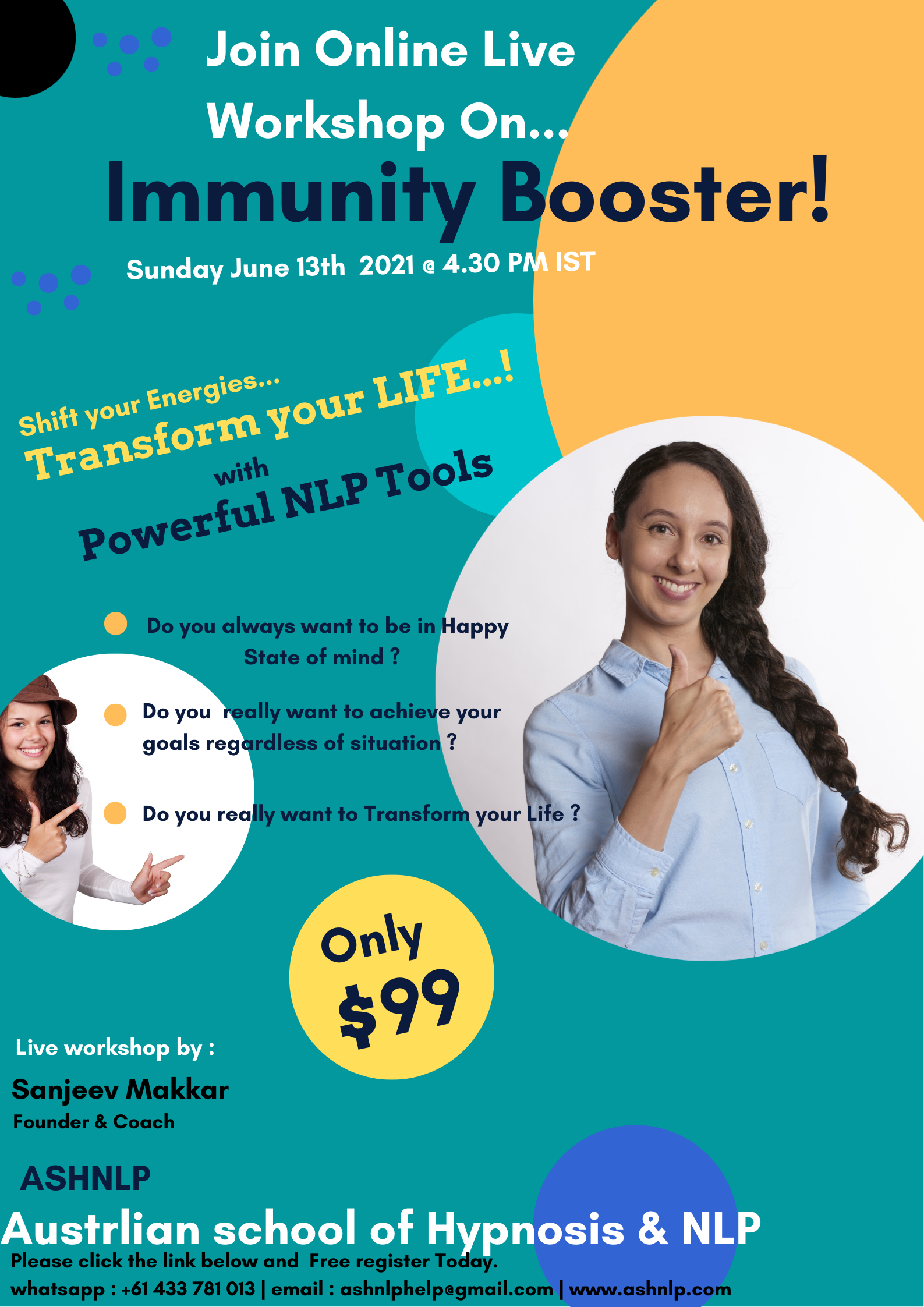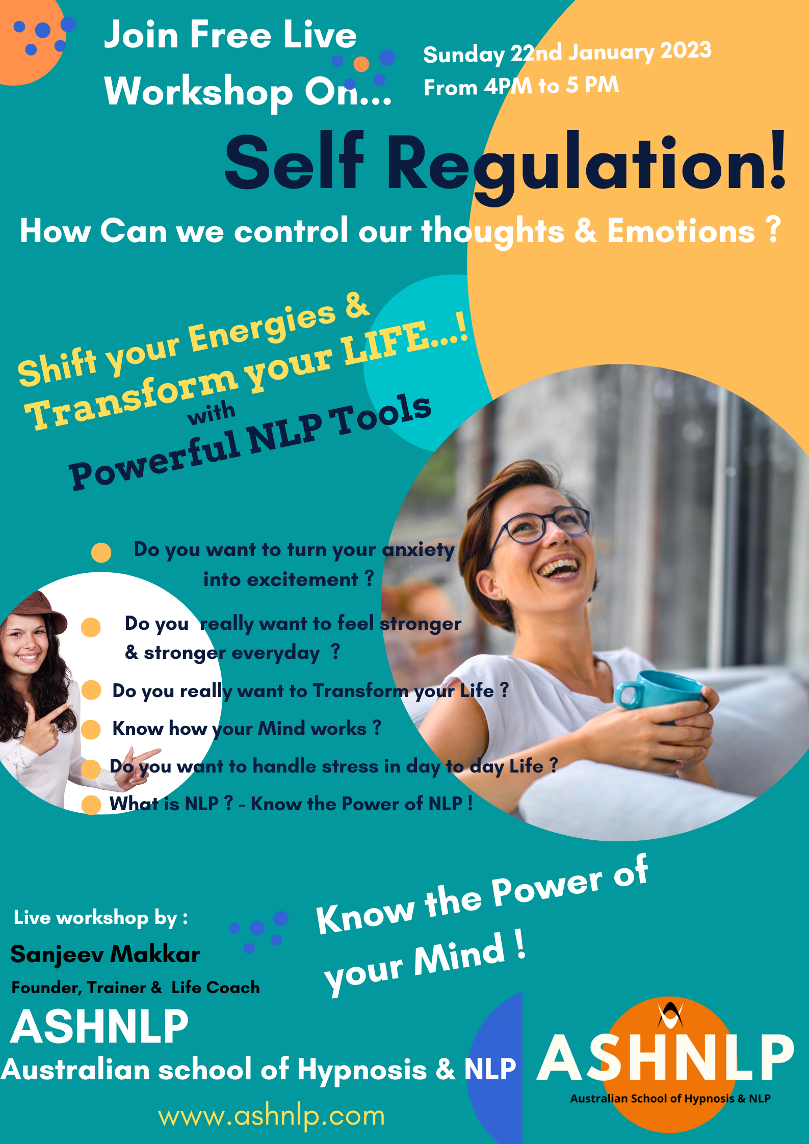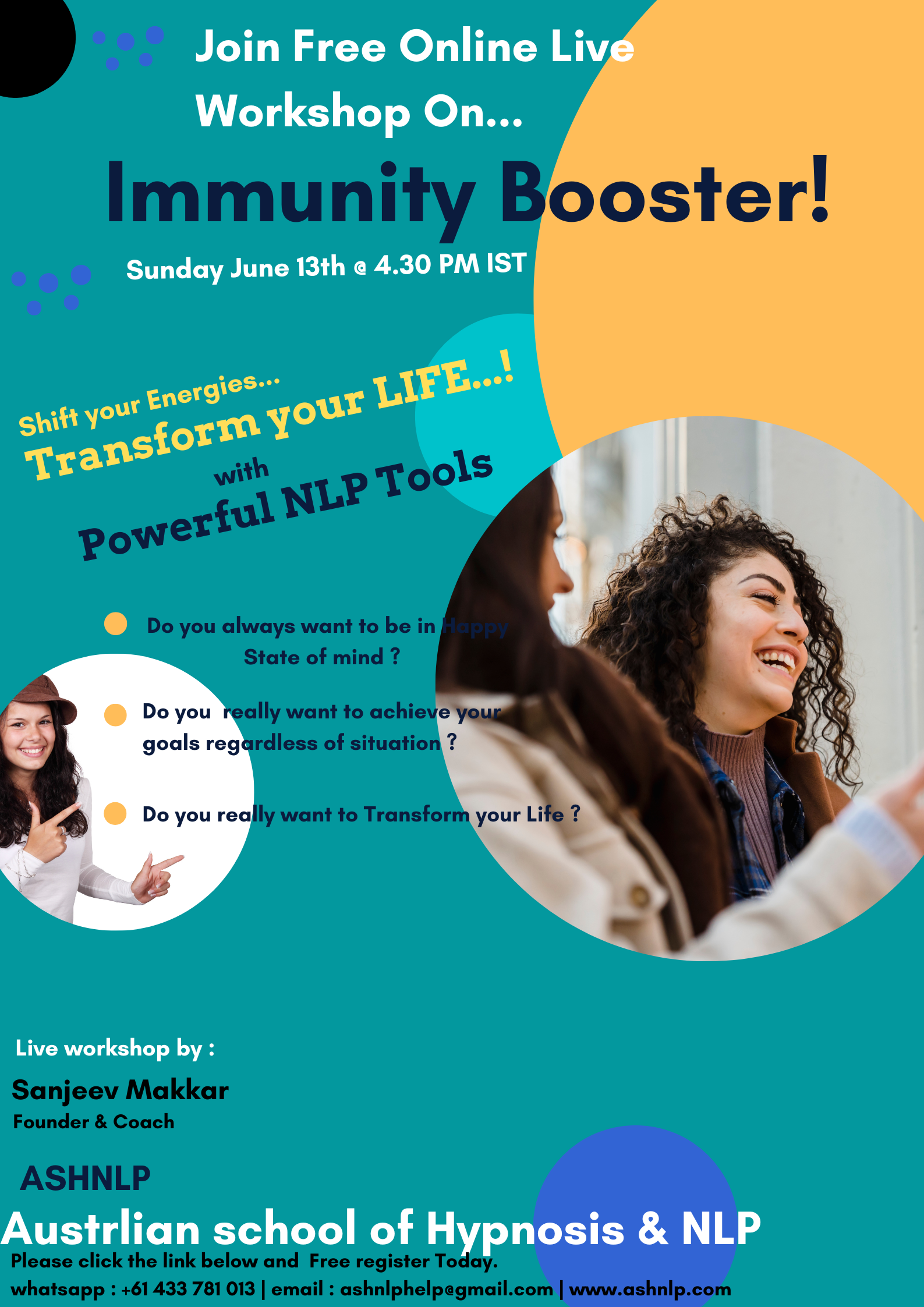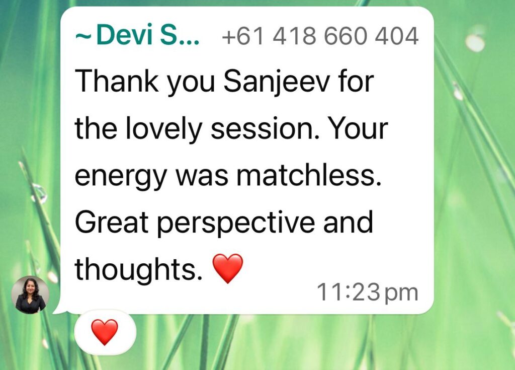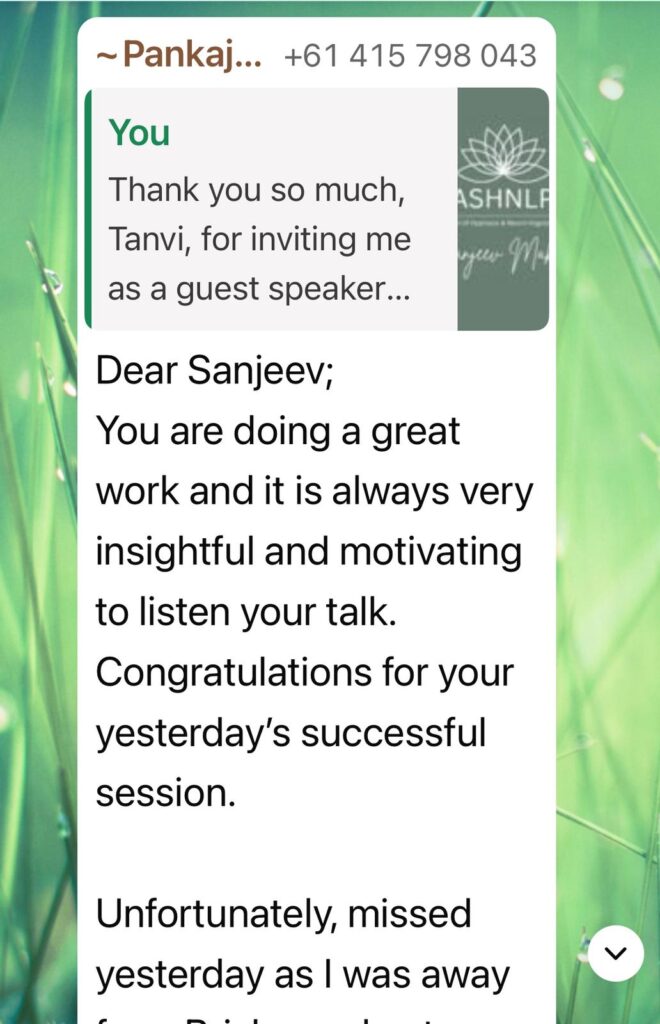 Hi I am Sanjeev  Makkar. I am an experienced Educator, Certified Life Coach, NLP Master Trainer, and Holistic Healer dedicated to personal growth, transformation, and well-being.